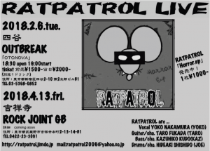 を発表した中村容子ボーカルのRATPATROLのレコ発LIVEがあります!